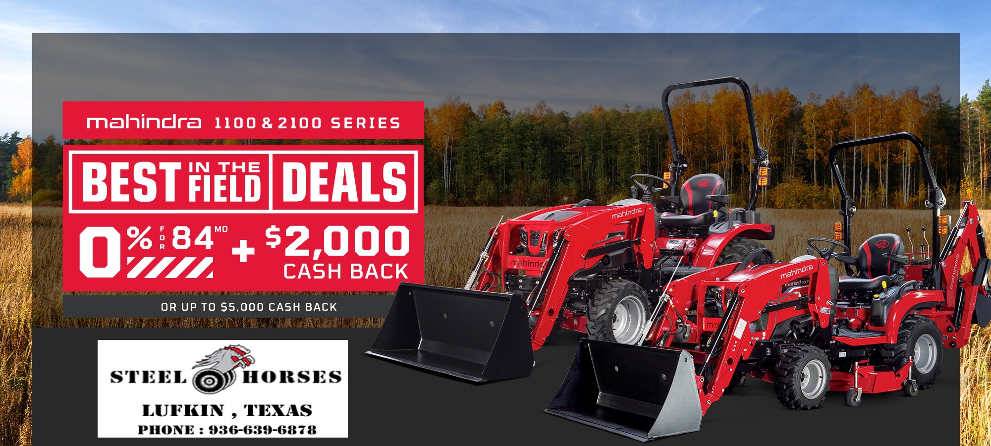 Steel Horses is an authorized dealership for Mahindra, Country Clipper, Lane Shark, Armstrong and American LandMaster® serving Angelina and surrounding counties. While we have been in existence for over 2 decades, our current management took charge in 2017 and has made sweeping changes that have prioritized customer service and customer experience. Most of our employees have been with us since the beginning of the company and their attitude reflects our commitment to our customers.